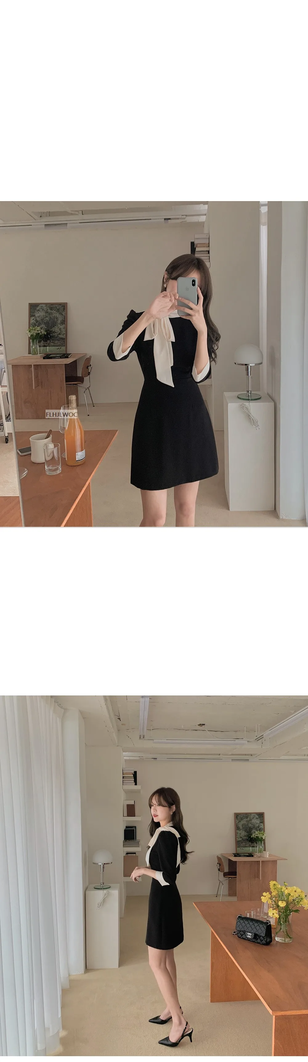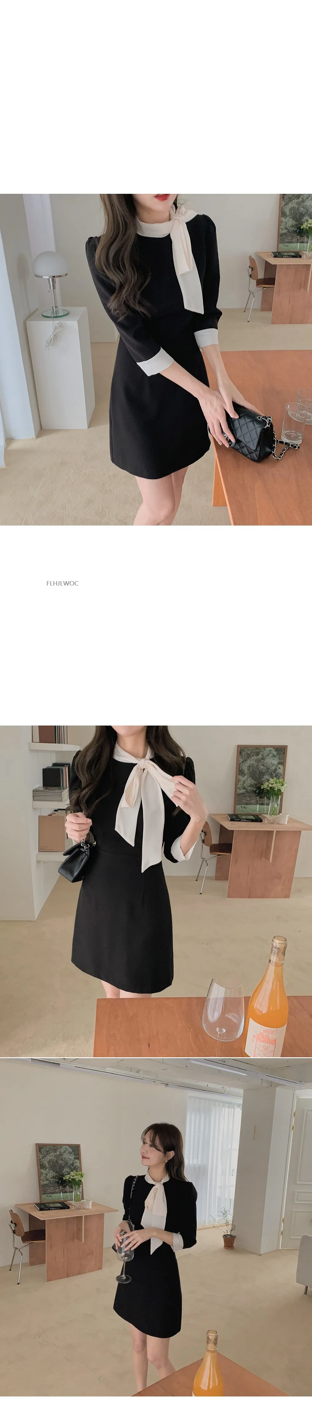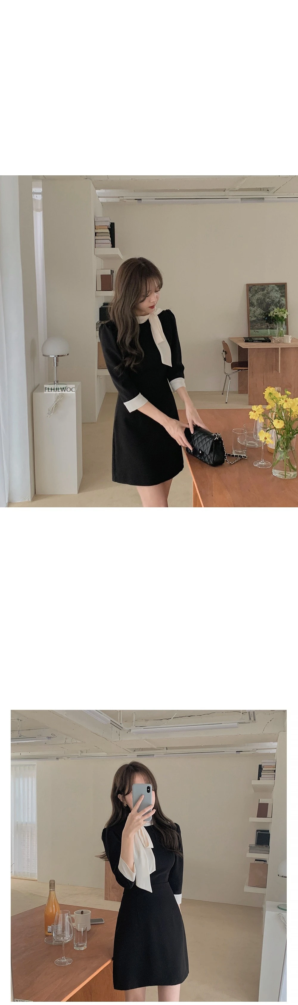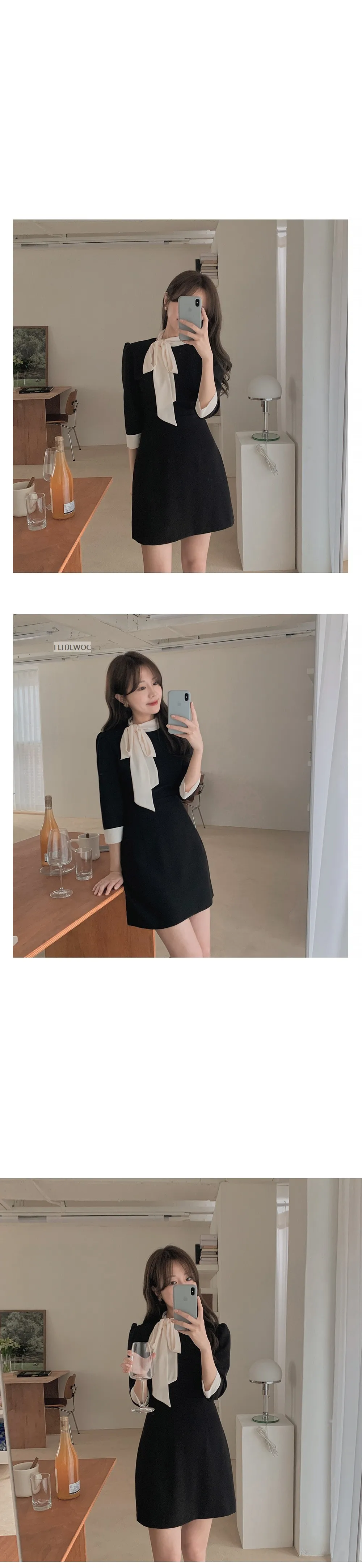 Шикарное модное черное платье-рубашка в Корейском стиле; Коллекция 2022 года; Милое женское платье в стиле пэчворк с большим бантом в японском стиле; Женственное платье