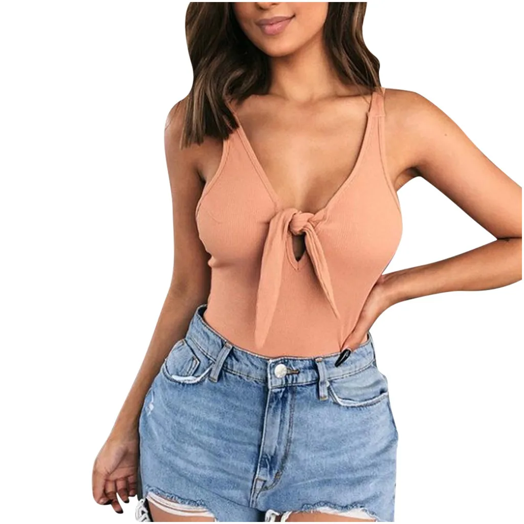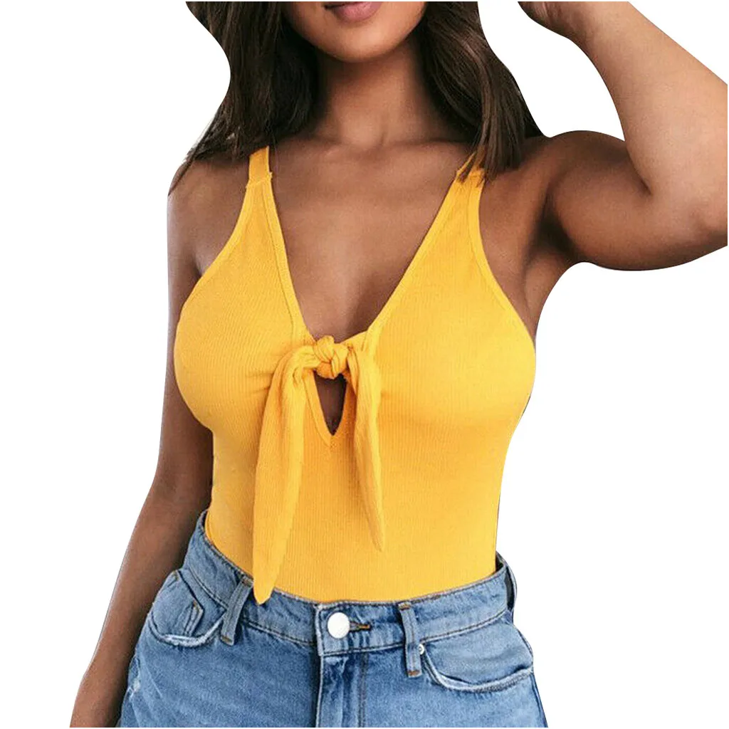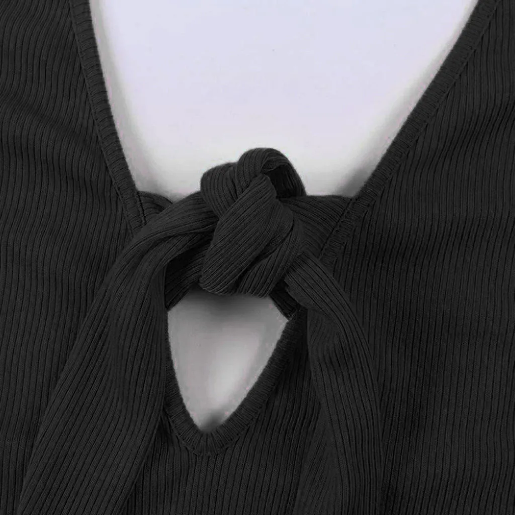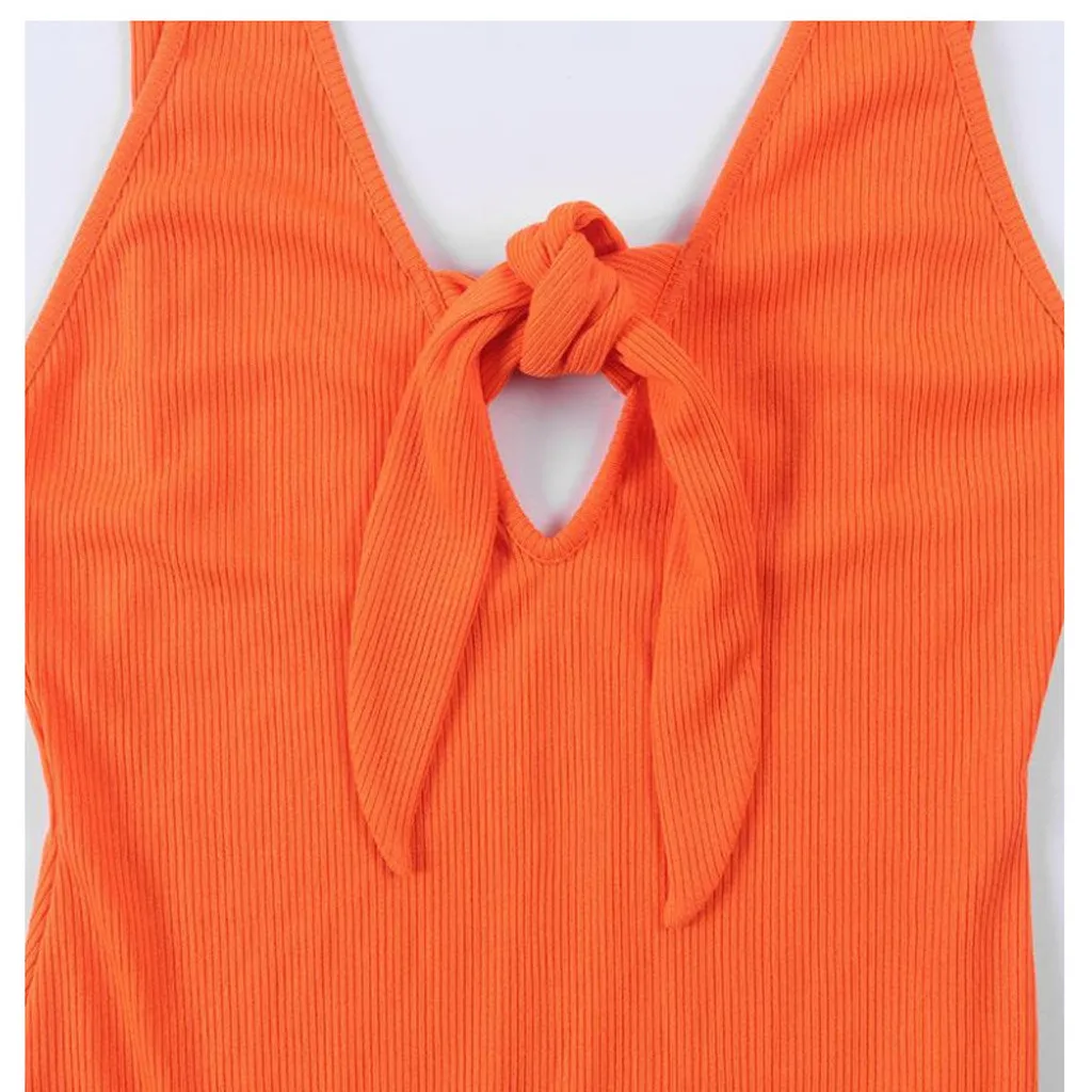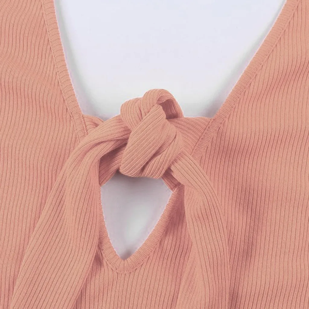 Модный женский Однотонный сарафан без рукавов с v-образным вырезом и бантом