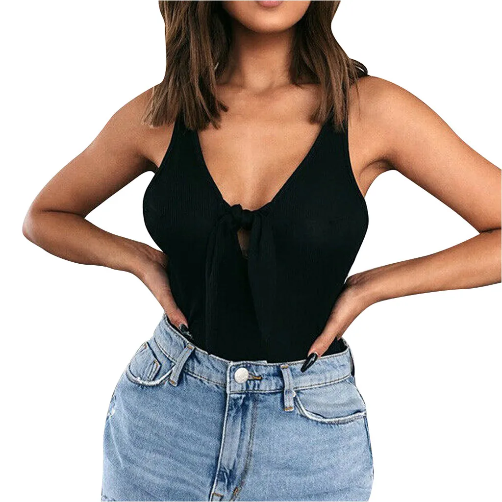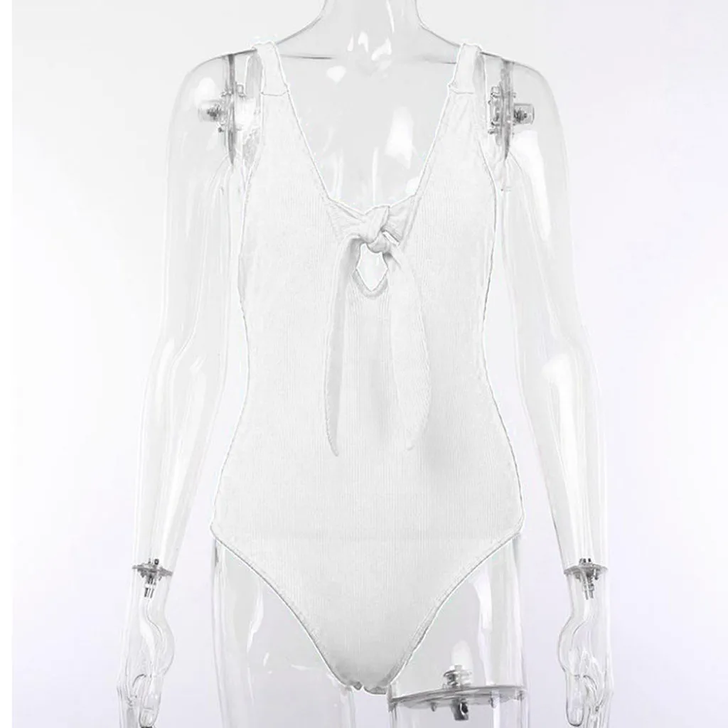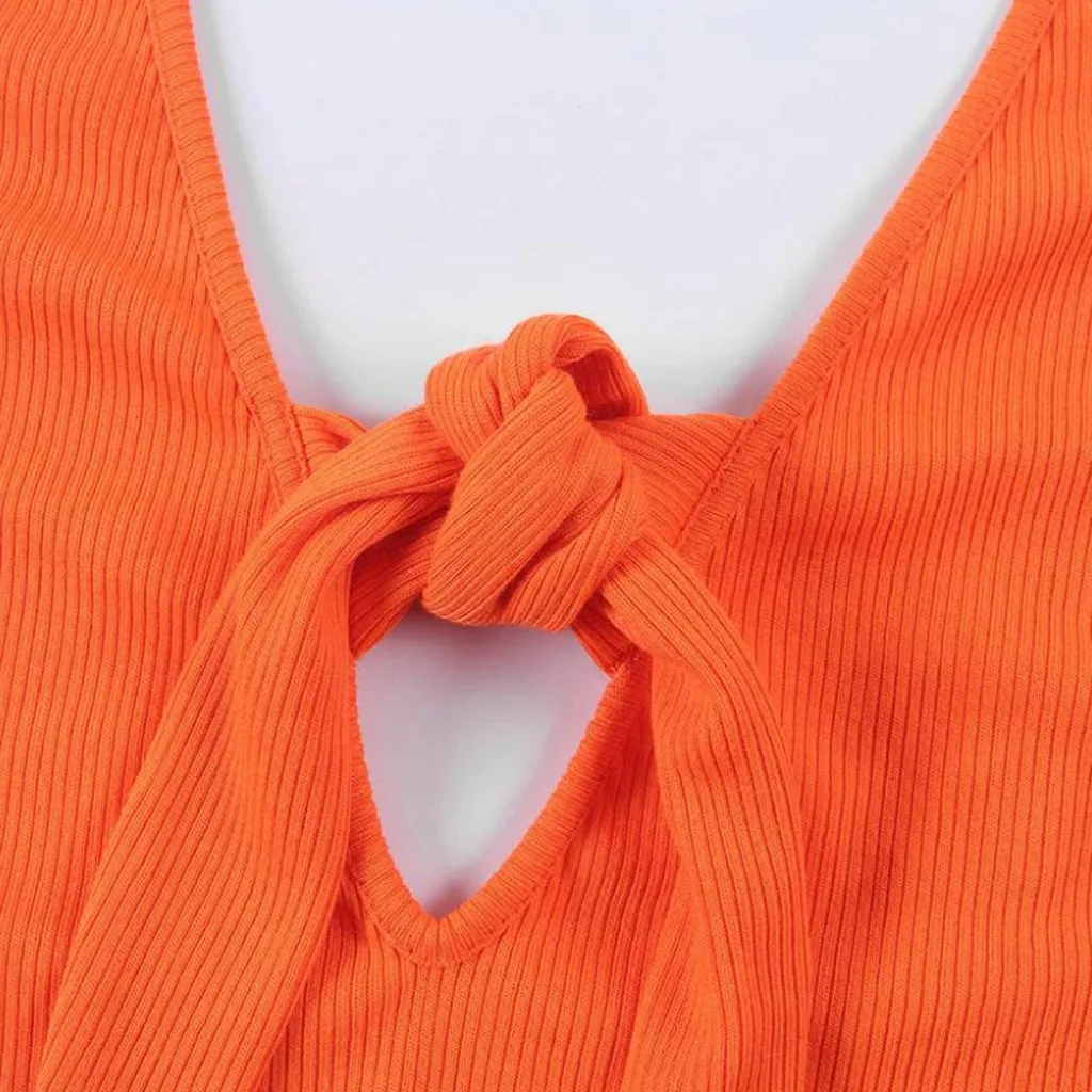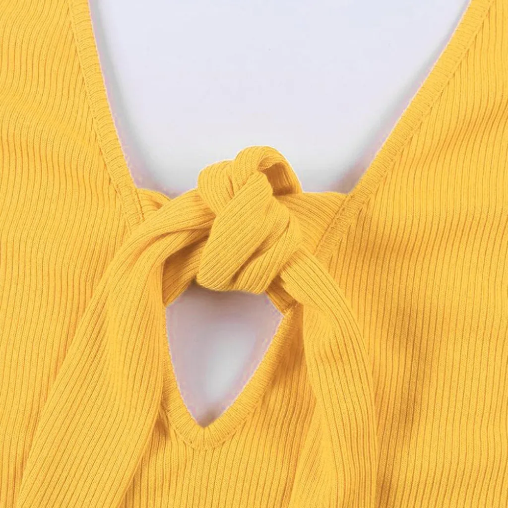 Модный женский Однотонный сарафан без рукавов с v-образным вырезом и бантом