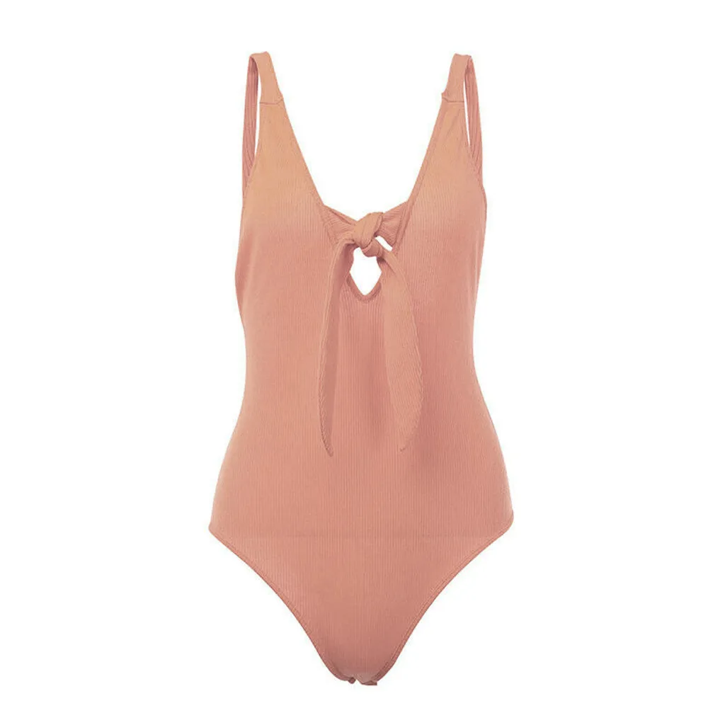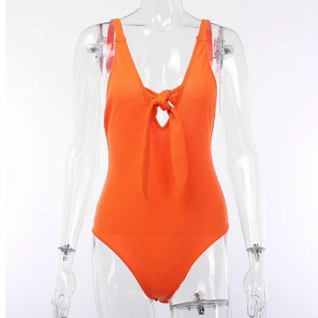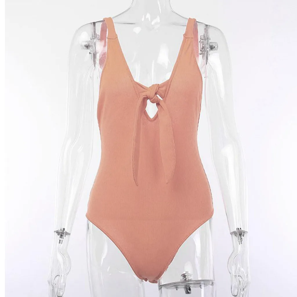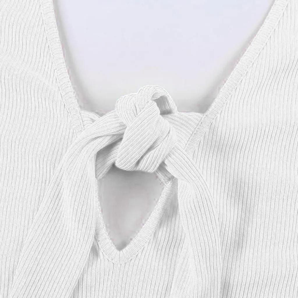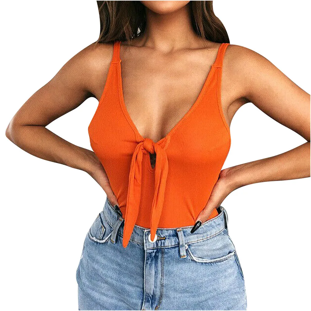 Модный женский Однотонный сарафан без рукавов с v-образным вырезом и бантом
